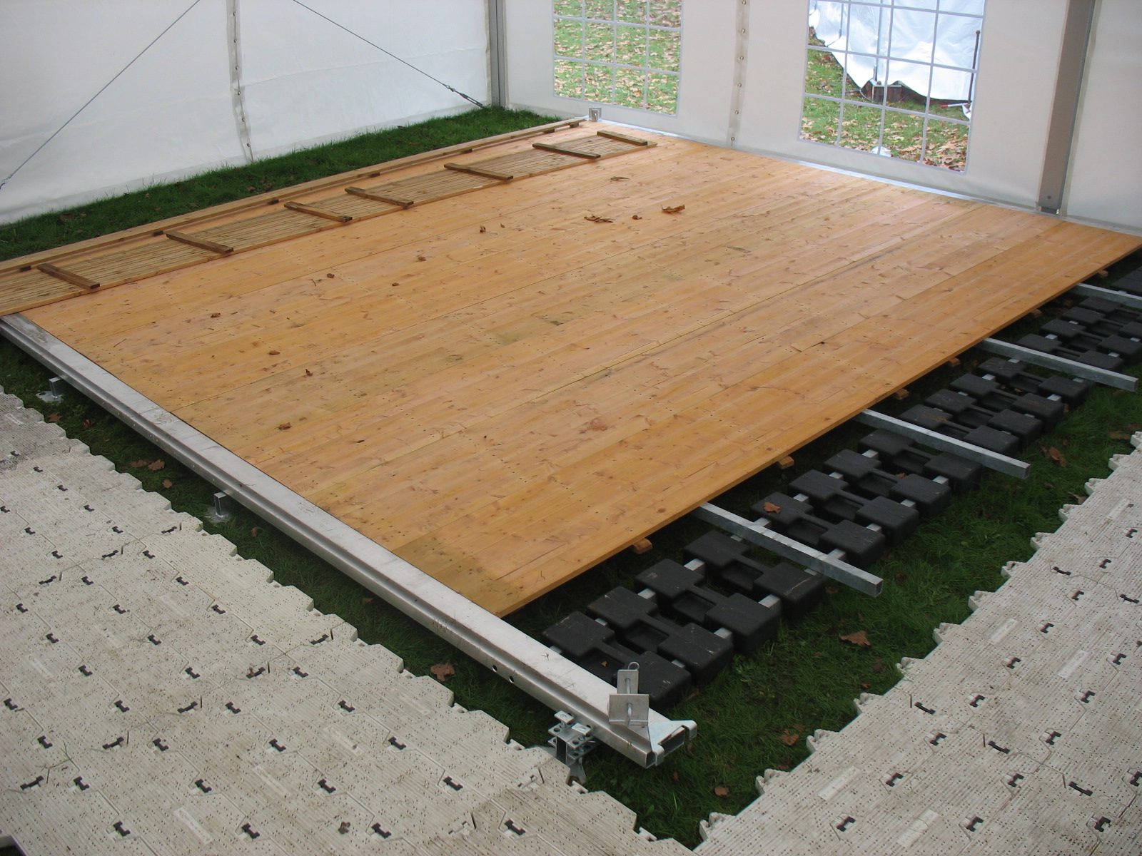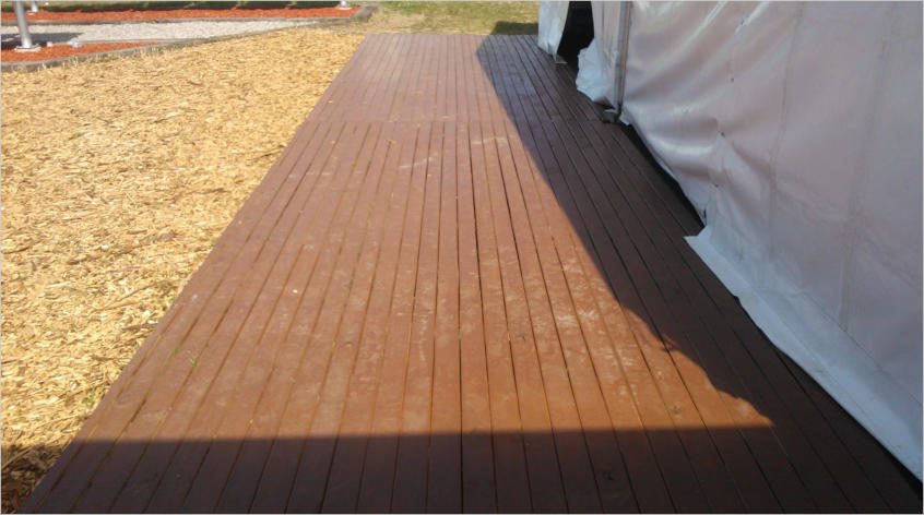 We can supply special purpose floors to add another level of class to your next event. Purpose built floating timber floors under marquees