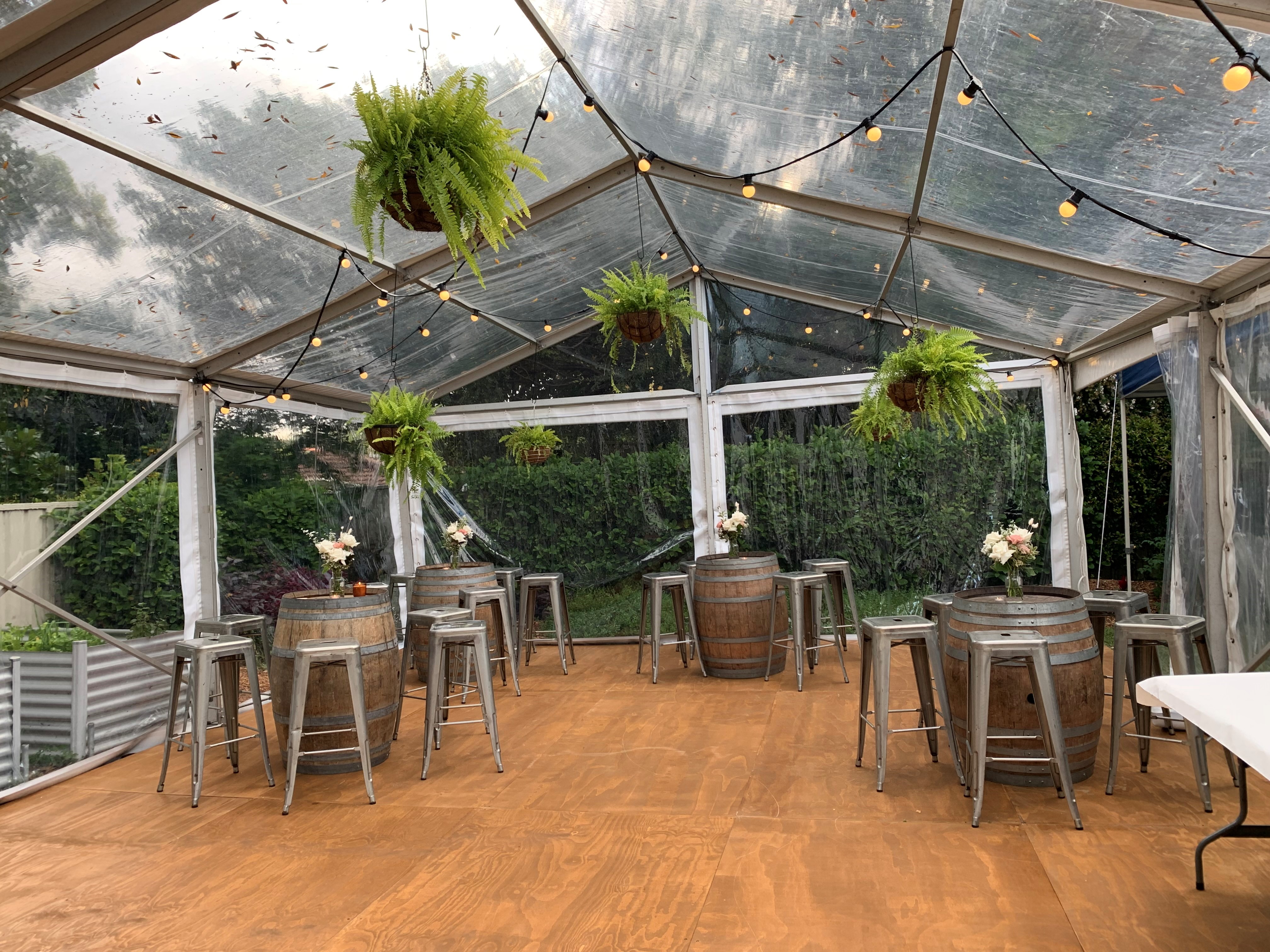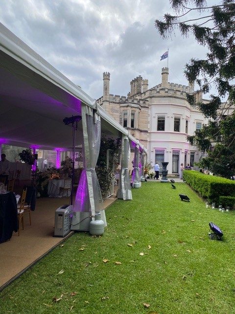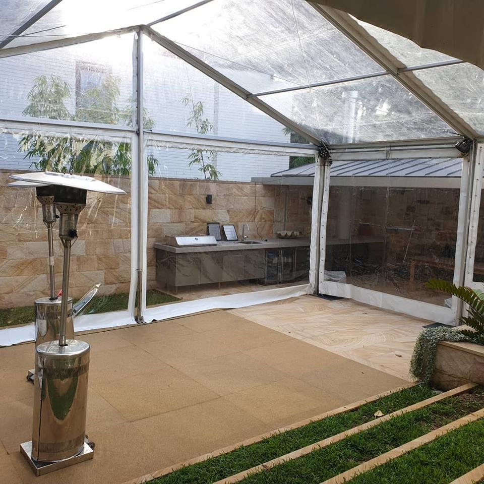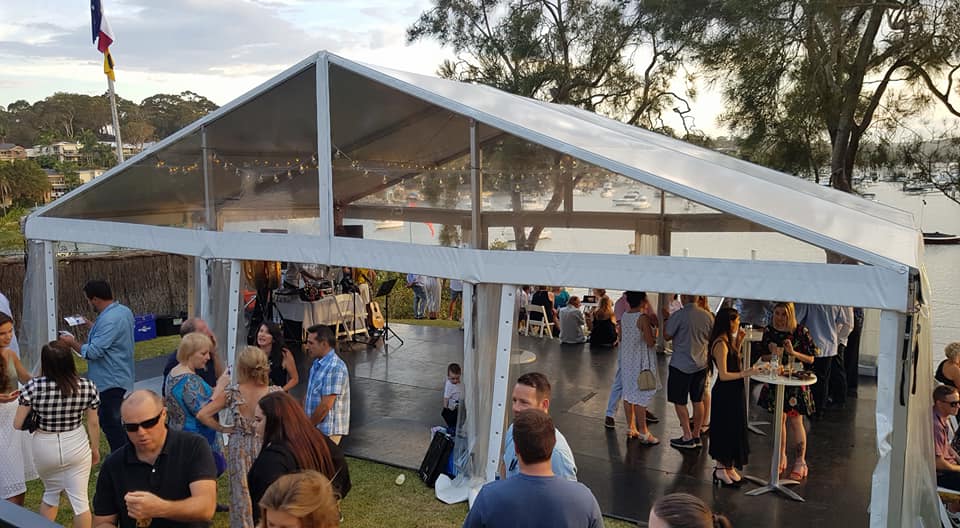 These extremely versatile structures may be pegged into grass, or weighted down where pegging isn’t an option. They can be installed on one level or two, on one of our floors over your pool to create maximum event space, or even on the rooftop of your office building in the city. We can build the marquee on your tennis court, on the beach or in the park, and we can do all of that in Sydney, country NSW or even interstate. Of course not all options are always possible due to access or area limitations, so we need to do a site inspection.