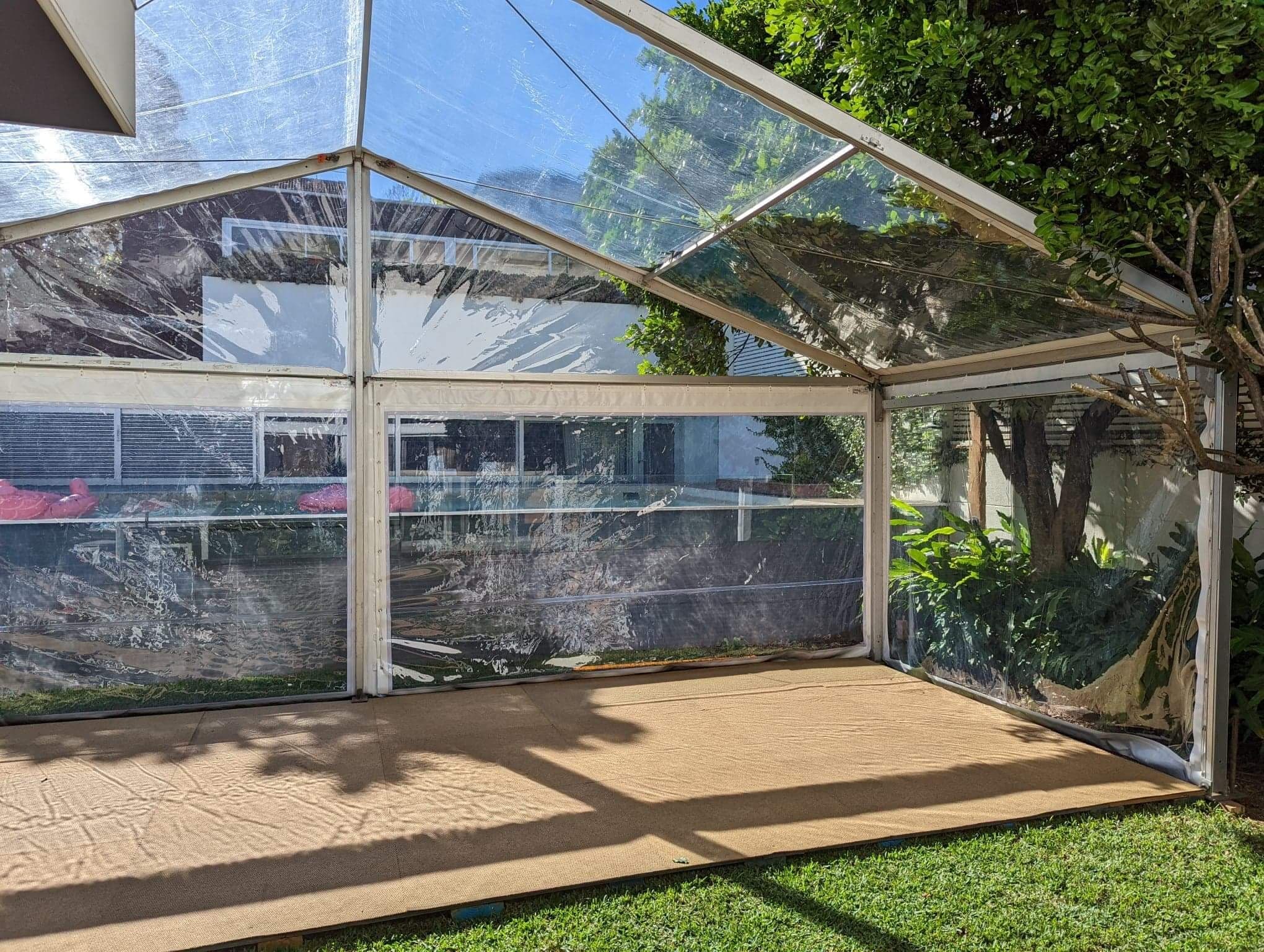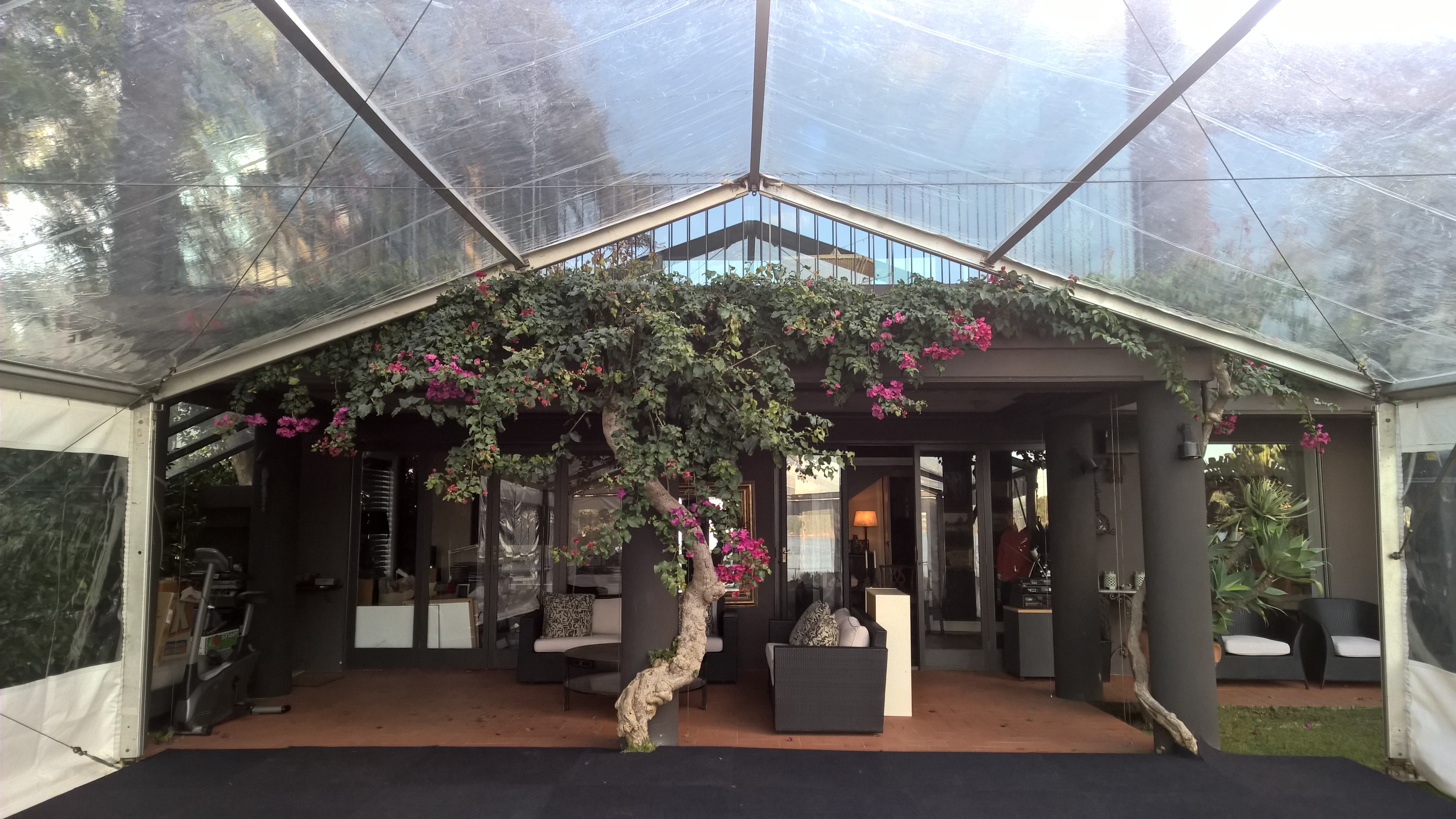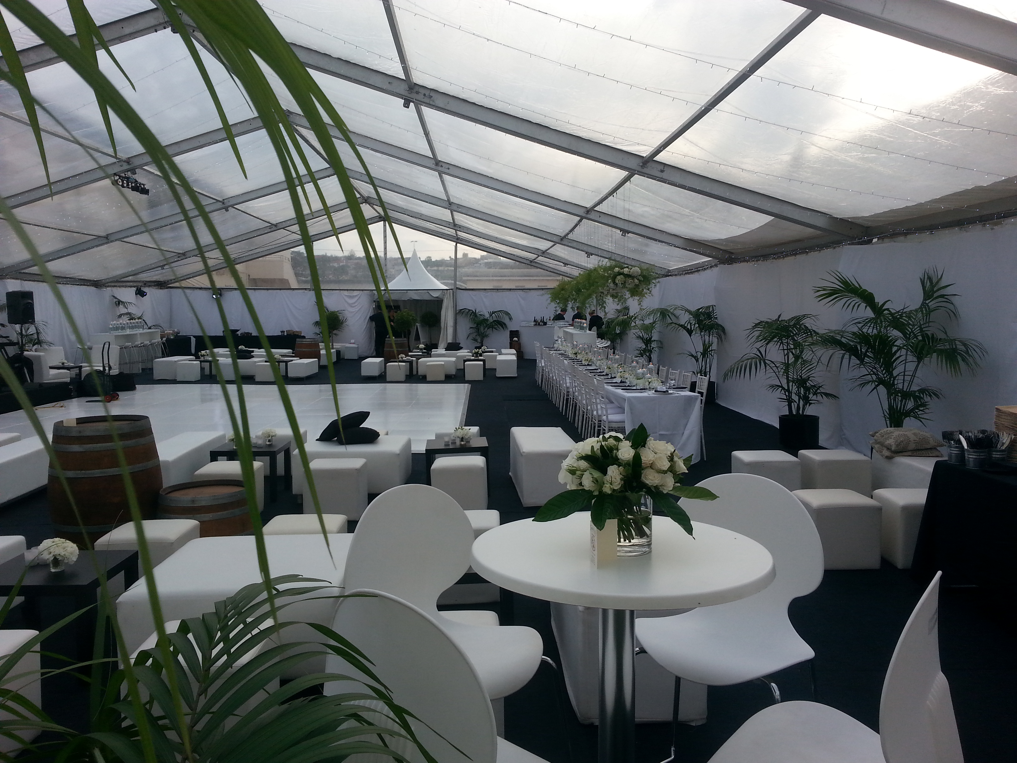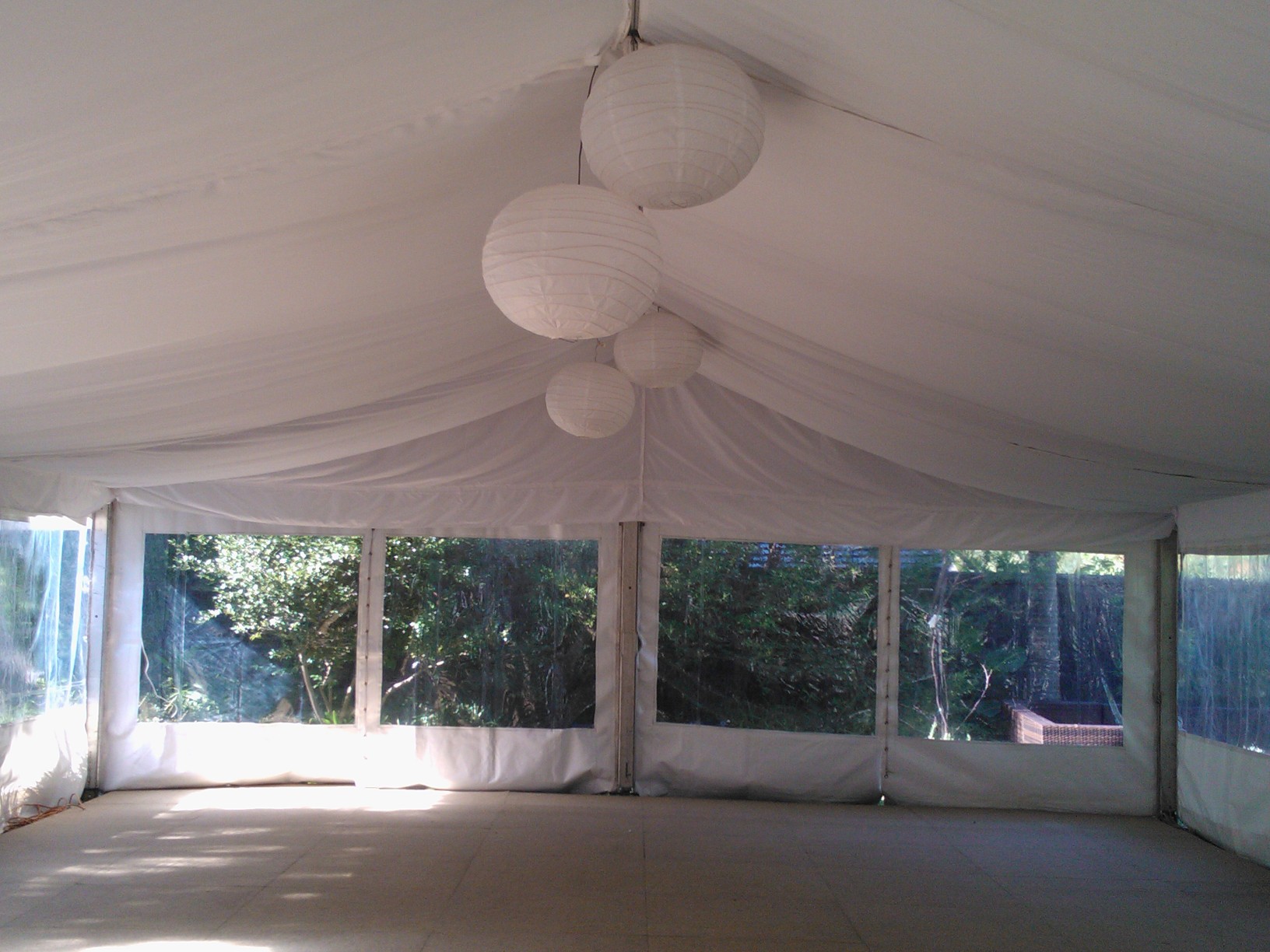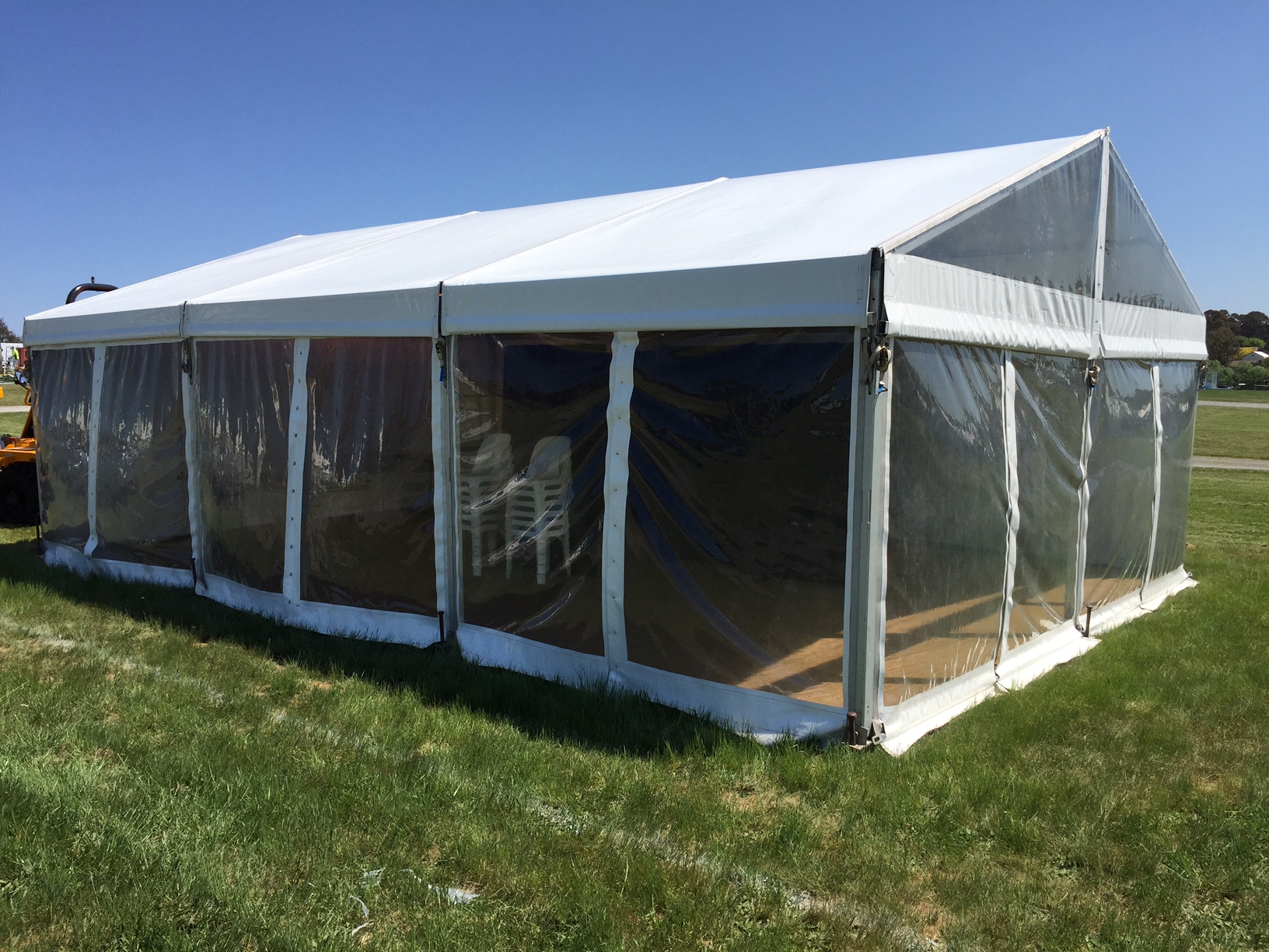 either white or clear walls. These options are also interchangeable - how about a white roof marquee with a “sunroof” in clear? We also