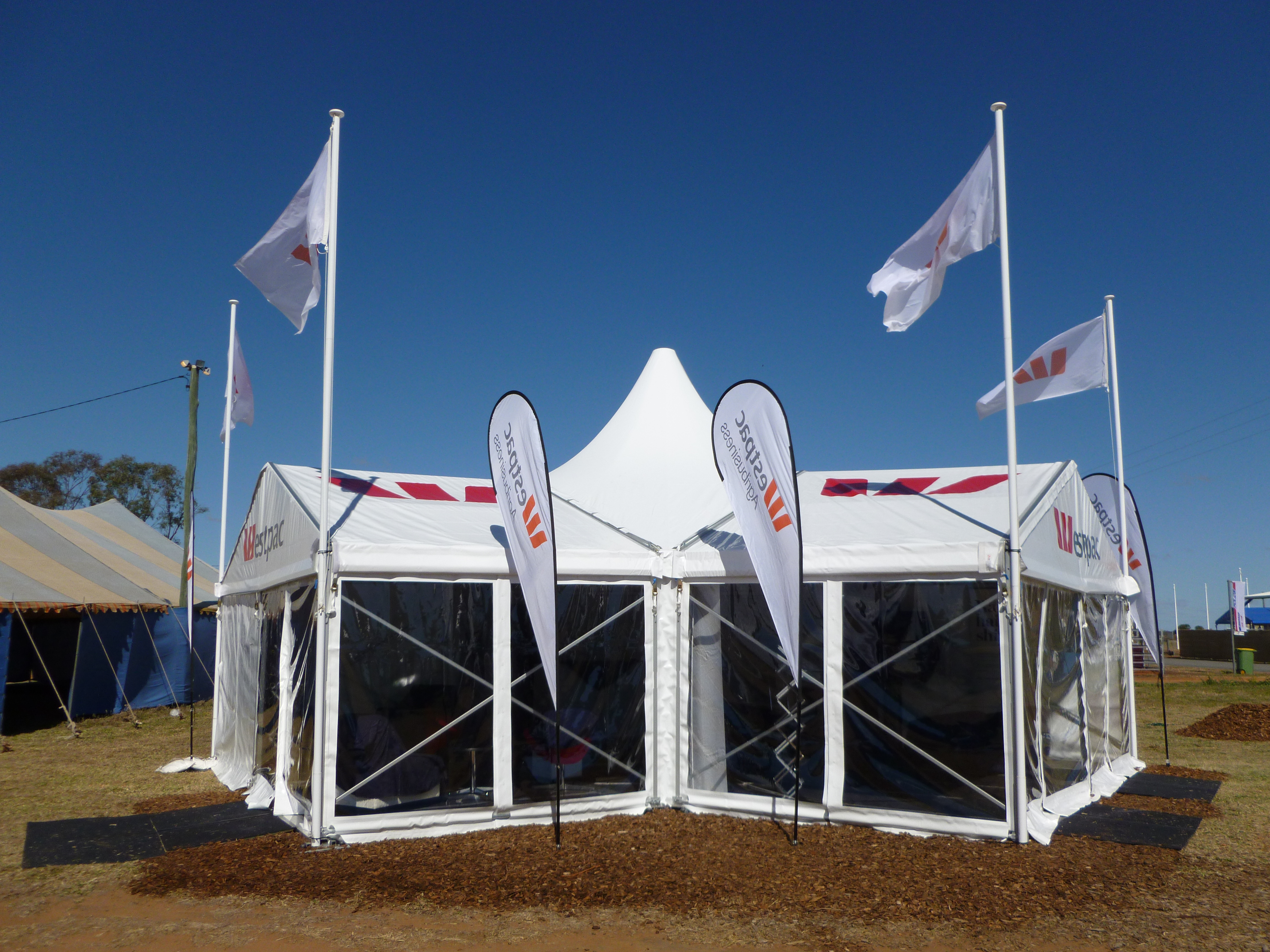 These innovative marquees are eye catching. The unique mega terz marquees are ideal for corporate branding and field days. These tents